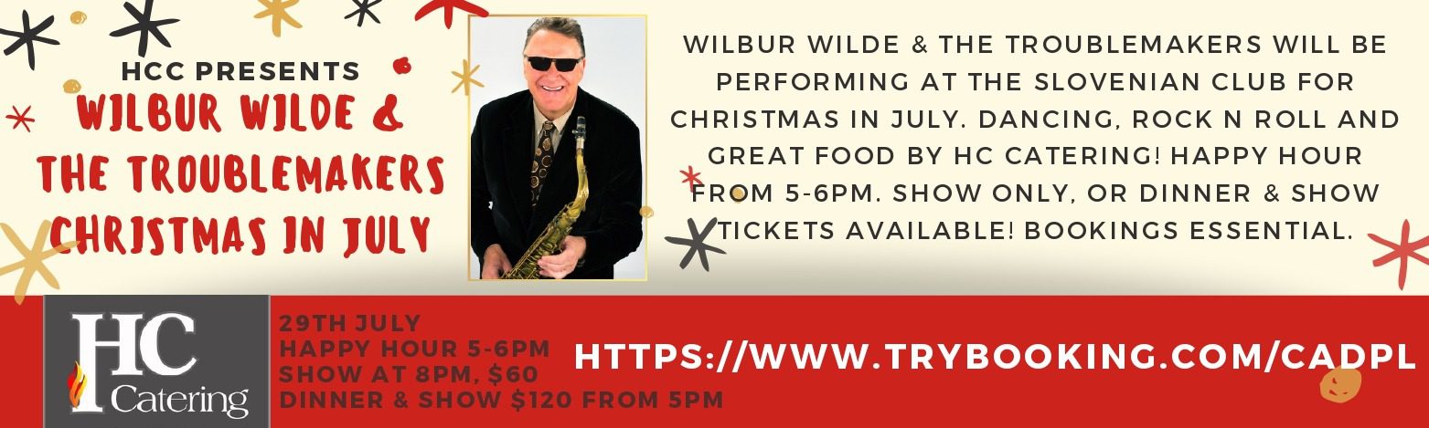 We are so excited to have Wilbur Wilde & The TroubleMakers perform Christmas in July at the Club on Friday July 29!